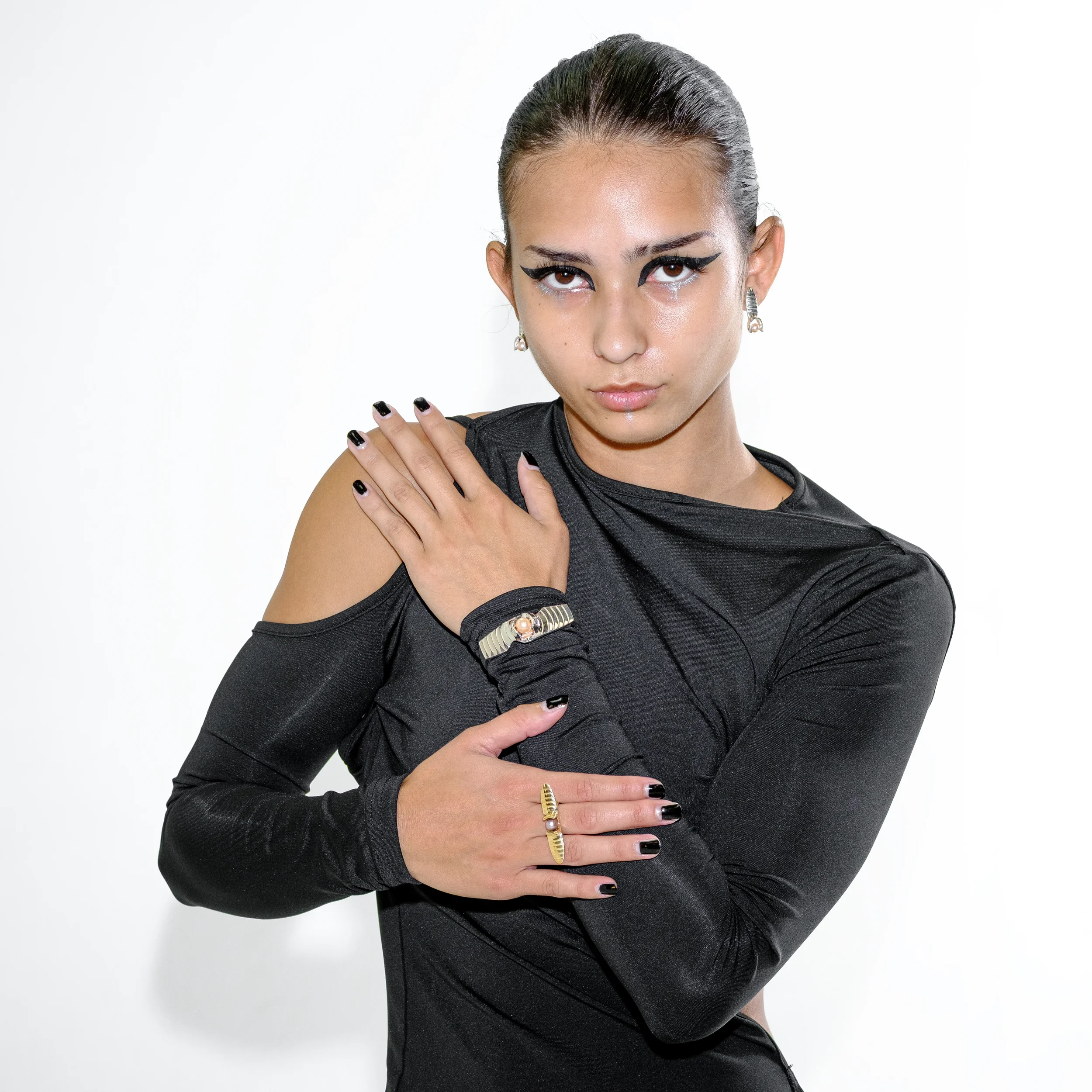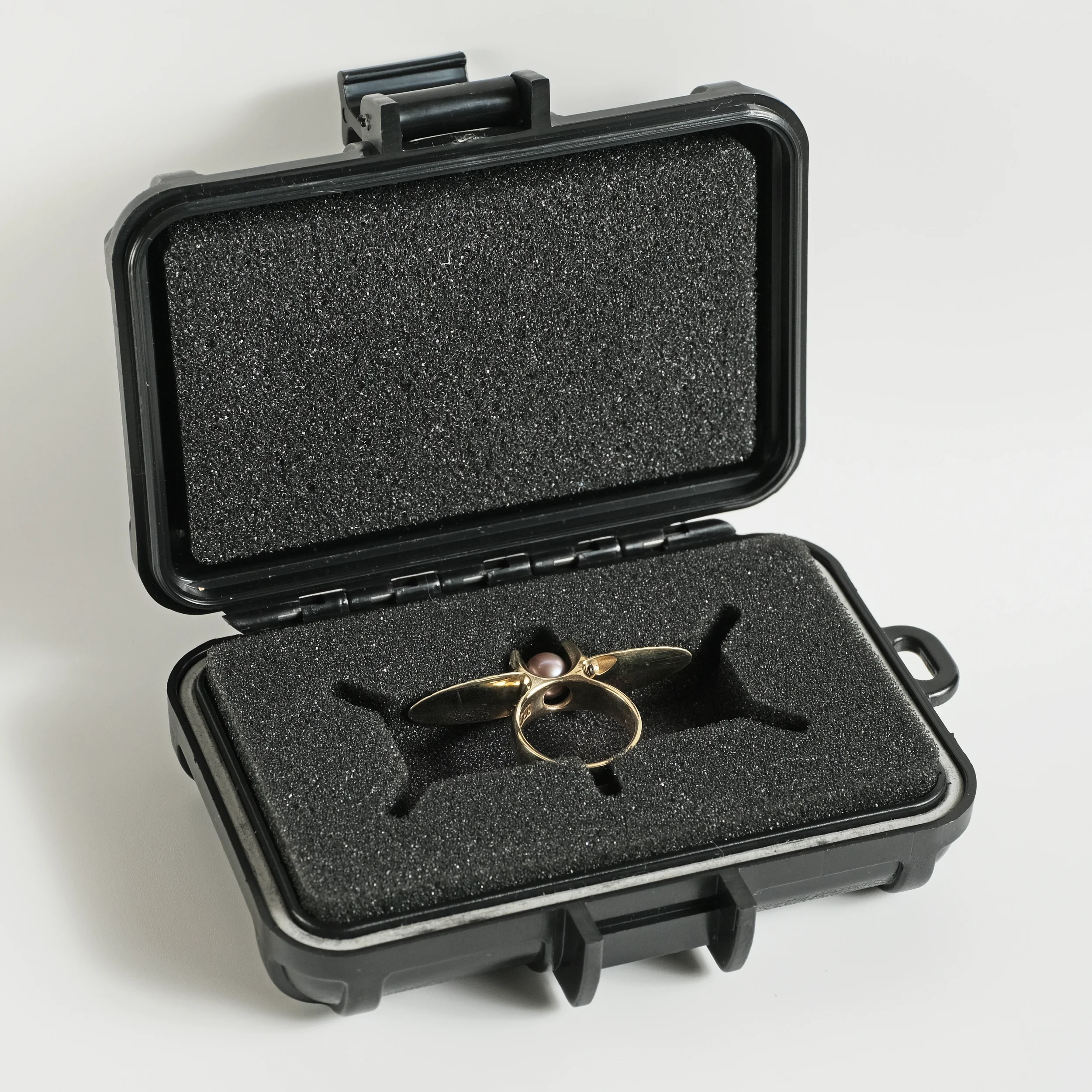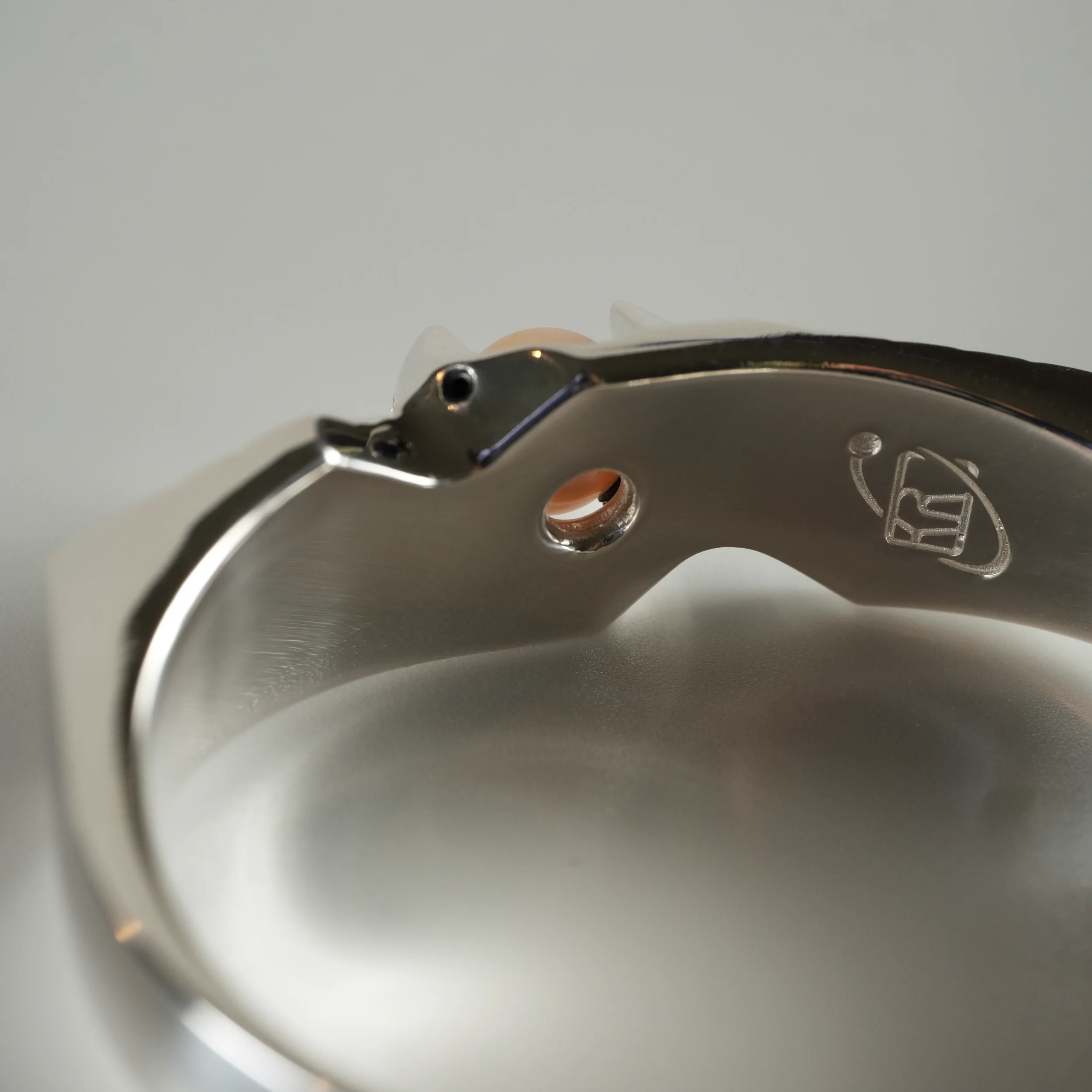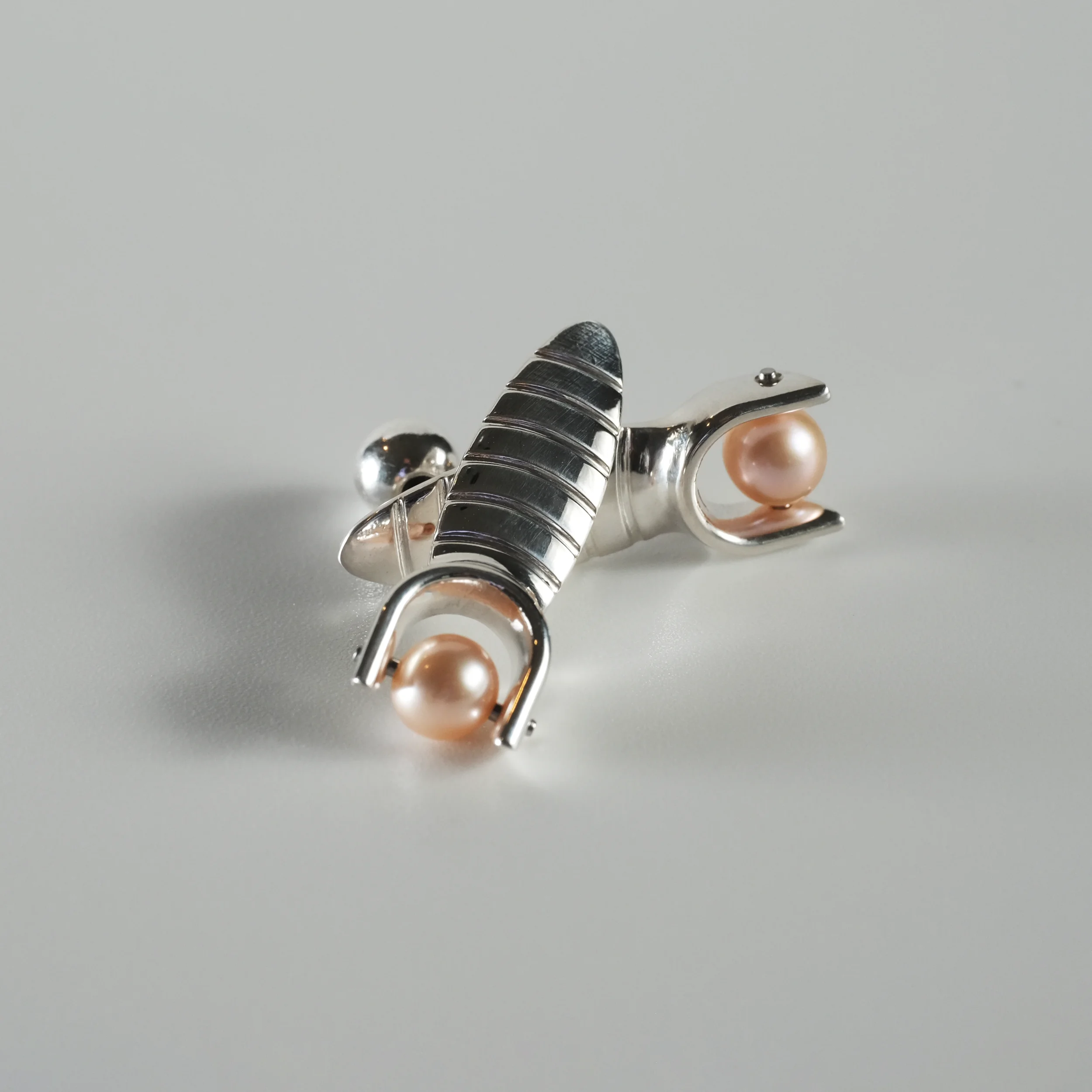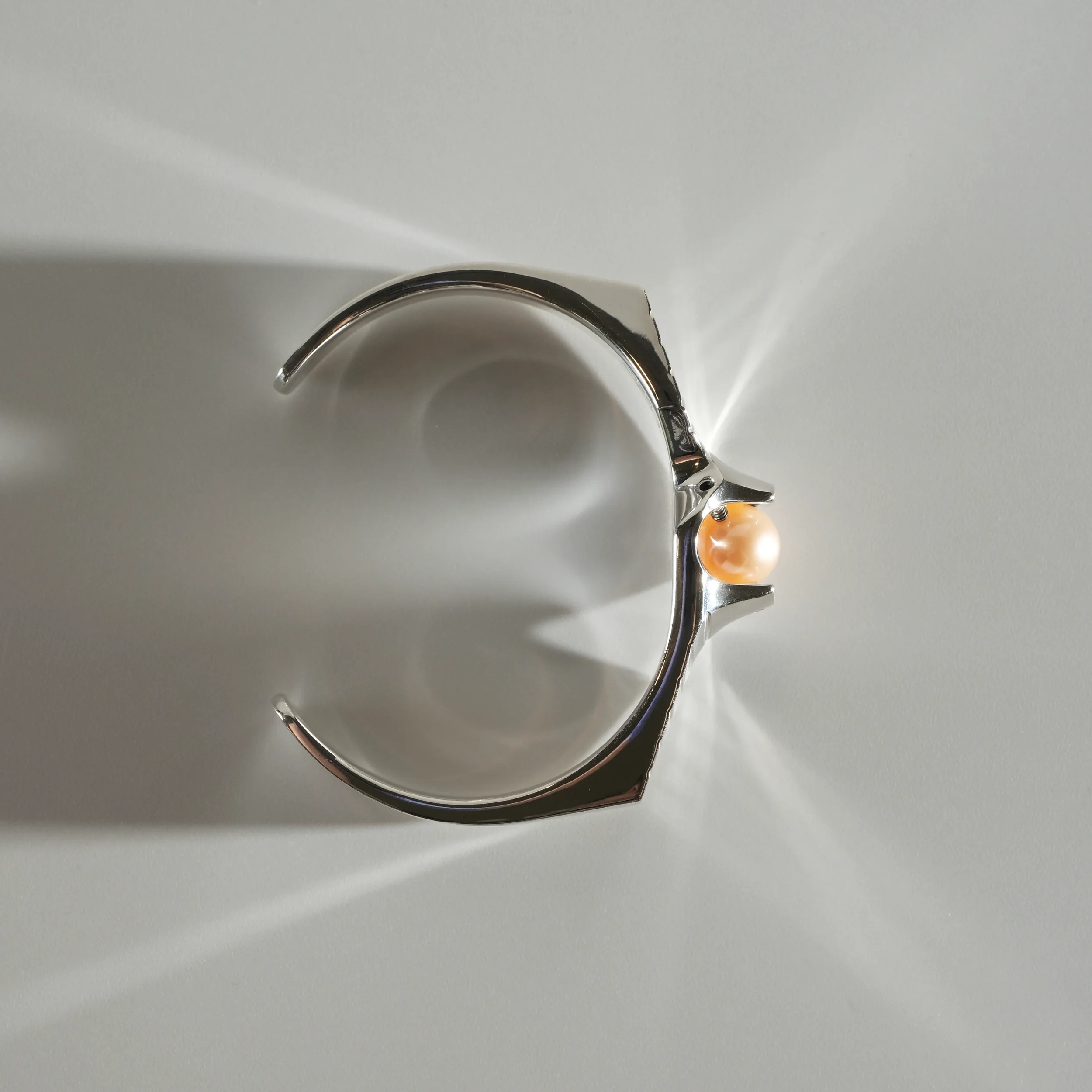 Insectile wings spread out from the center of every piece in this A pearl hovers between them, seemingly untouched by the unique 4-point setting. A throwback to some of our earliest designs, this collection is available in Argentium silver or 14k gold.