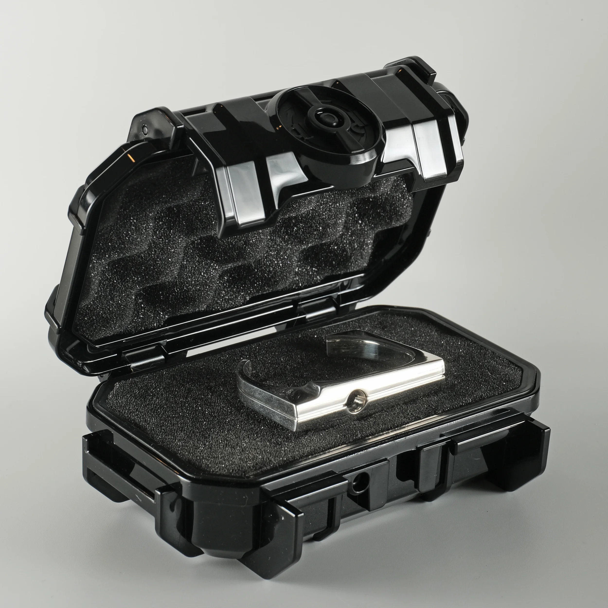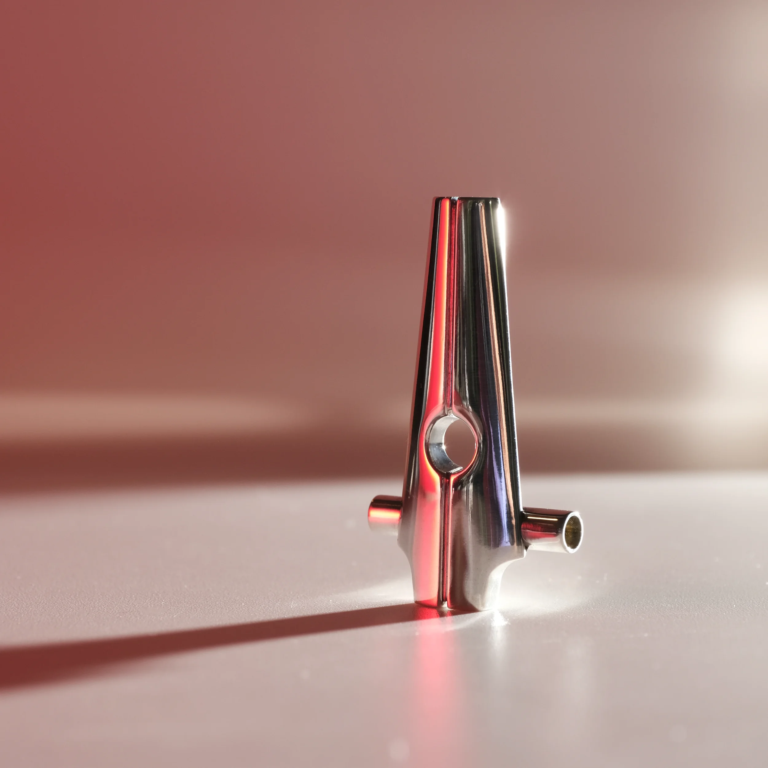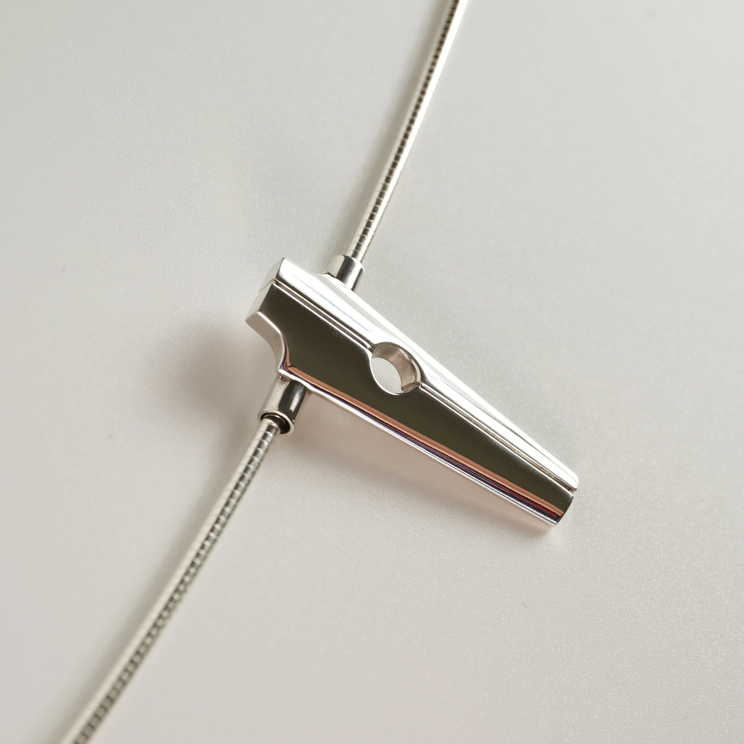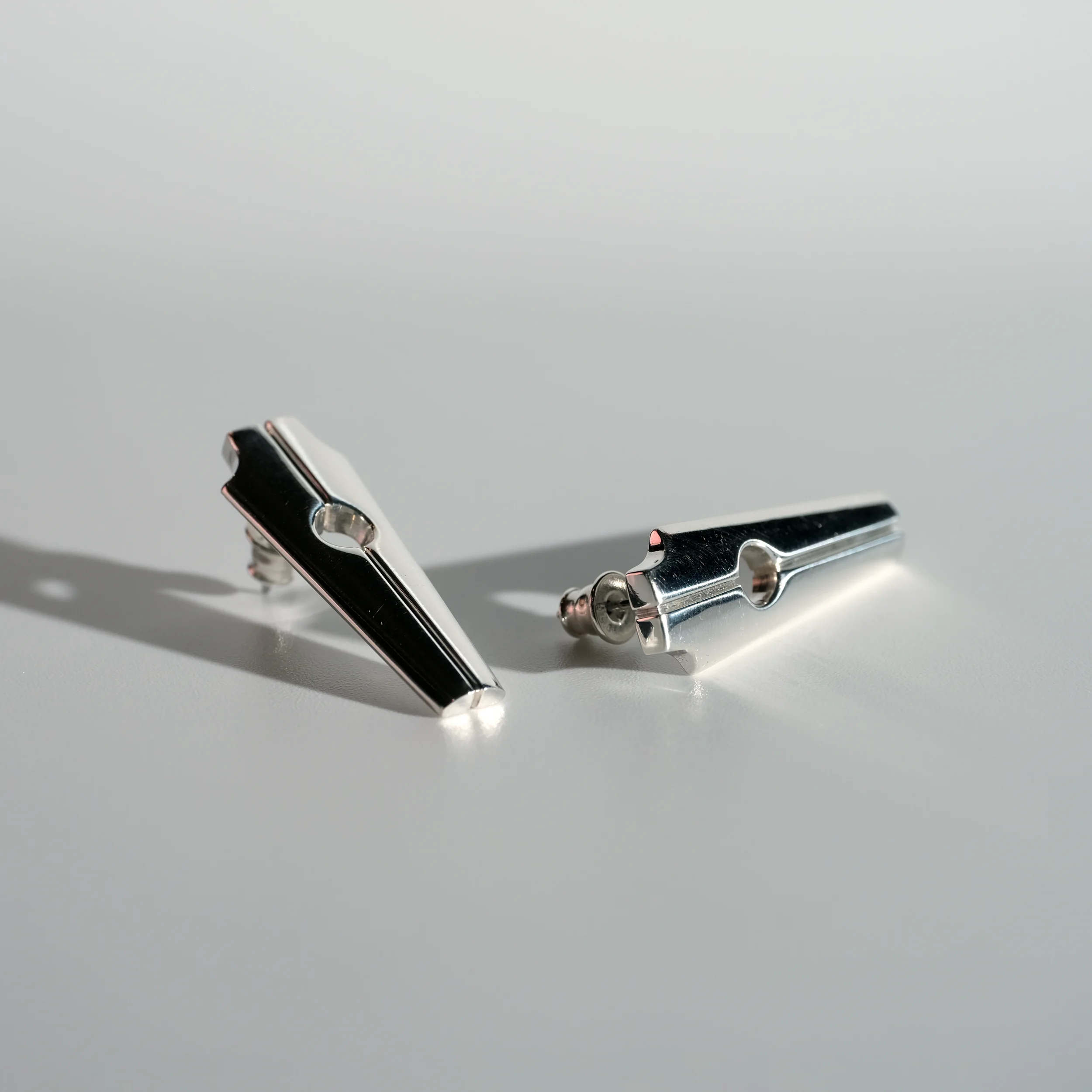 A modern take on a sacred monument. Streamlined yet substantial, with the bearing heavy enough to be the center of attention. Available in Argentium silver or 14k gold.